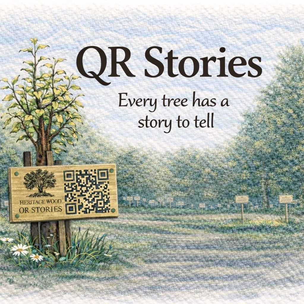 QR Stories connect a simple plaque to a living Story, shared by family and friends and rooted in the landscape of Heritage Wood.